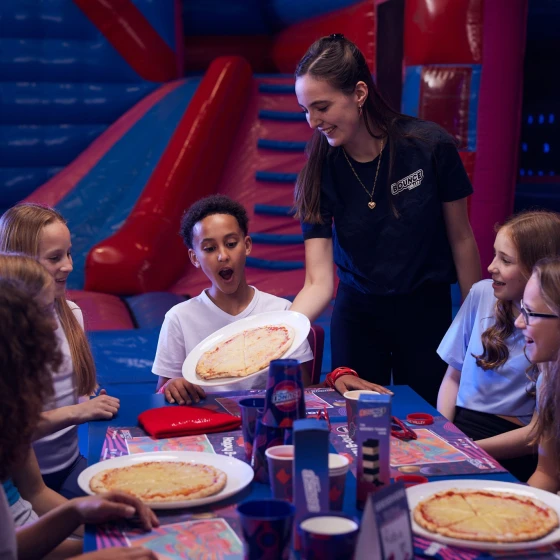 - Unlimited pizza, which you can eat up to half an hour after jumping